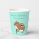 Throw the perfect party for animal lovers with these chipmunk-themed paper cups. These party supplies feature realistic style illustrations of cute chipmunks in light brown set against a mint green background.