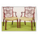 Chippendale mahogany dining chairs in the Chinese taste, top rails surmounted by a ducal coronet and griffon crest, c.1760 located at the Wien Museum Karlsplatz, Vienna, Austria.