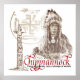 Cette affiche amérindienne présente une photo de l'amérindien AKA Aleek-chea-ahoosh de la tribu Crow, un mât totémique et une peinture de sable de Navajo. Chippiannock est un mot indien qui signifie Village des morts et est utilisé dans ce design comme une expression dans le souvenir de l'héritage indien américain. Il n'y a pas de mort, seul un changement de monde est un proverbe indien duwamish. Une belle affiche pour ceux qui sont spirituels ou s'intéressent à l'histoire, aux cultures et aux civilisations.
