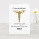 This chiropractor medical symbol represents the patient client care and expertise that go into the field. Celebrate the earning of the white coat with this symbol with gold look wings and the human body in a matching tone. Customize this with the name of the school for a truly personal congratulations card in this exceptional medical field. (The gold glitter look on the wings is digitally created and only simulated to give the effect of the gold.)