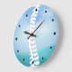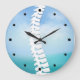 This wall clock for chiropractors features white lateral spine logo with a drop shadow and black dots for numbers on a tranquil seascape vector background. Beautiful gift for your favourite chiropractor!