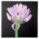 The simple yet dramatic image on this 6” Ceramic Tile is an original photograph by ZoeSPEAK of a flowering chives plant. The closeup photo features one pale lavender flower atop a light bluish green tubular stem. The dark background shows off the beauty of this delicious herb.