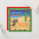 This cute little Chihuahua holds a maraca and wears a colourful sombrero to invite you to his Mexican fiesta party. Frame covered in red chili peppers. Hand drawn by McBooboo