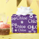 White CHLOE custom name with white snowflakes on purple.
