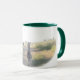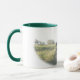 A mug with vignetted photograph of Chloe the kangaroo and Sam the sheepdog on their morning walk