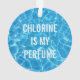 Le chlore est mon parfum est un texte typographique en blanc sur une eau de piscine bleu étincelant et limpide. #natation #nage #nage #nage #nage #noël #décors #fêtes #décors #homéos #aquatiques #aqua #plongée #waterpolo #water #modern #fun #amusants #ornaments #christmasornaments #holidayornaments #giftsforher giftsforswimmans #cadeau #cadeaux