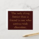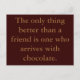La seule chose qui vaut mieux qu'un ami est celui qui arrive avec du chocolat. L'inspiration et la motivation des cartes postales.