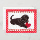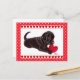 Un adorable Labrador au chocolat joue avec le jouet Red Heart. Pois de polka rouge et blanc et minuscules coeurs rouges. Sympa pour la Saint Valentin. Unique et drôle Labrador Retriever Peinture peinte par Naomi Ochiai du Japon.