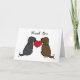 Chocolat Labrador et Black Labrador avec carte de voeux de Merci cardiaque. Unique et drôle Labrador Retriever Art créé par Naomi Ochiai du Japon. Deux adorables Labradors Jaunes tenant un coeur dans la bouche. Design doux.