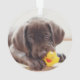 Le chiot de laboratoire au chocolat avec le canard de jouet.