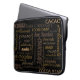 Kewl sleeve for your or a sweet tooth in your life. This neoprene laptop bag adorned with the words chocolate, almonds and dark chocolate text in English, French and German in a variety of colours and font styles, colours and sizes. Click the orange Customize it! button to select a background colour other than black when you click Edit then Background. Be sure to check out Choose your options in the upper right column to see the other sleeve sizes.