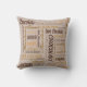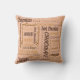 A sweet throw pillow design showing a text block with chocolate, dark chocolate and almonds in English, French and German plus other words in a variety of font styles, sizes and colours over a pastel peach background on one side and a beige background on the other side of the pillow. In the right column under Choose your options you can also select the Lumbar Pillow.