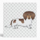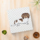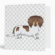 Destei's original cartoon illustration of a cute long hair chocolate brown and tan piebald coat colour Dachshund breed dog. The background has a pattern of grey dog paw prints. There is also a personalizable text area on the spine together with a black paw print silhouette.