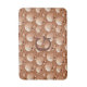 Seashells in a soft, satiny gradient of tan and chocolate brown on a cocoa brown background bath mat with a custom monogram