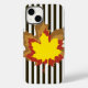 Chocolate Autumnal Stripes with Leaves Case-Mate iPhone Case