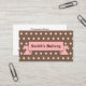 A classic banner design decorates this chocolate brown and pink polka dot business card. Customize this business card to suit your needs. Change the information, background colour, etc...The design is from original art. Use this professional business card for a boutique, bakery, alterations, daycare, child care, coffee shop, chocolatier, gourmet foods, chef, caterer, catering, florist, cosmetologist, appointments, hair stylist, salon, spa, nail salon, home decor, interior design, accessories, knitting, sewing, antiques, etc...
