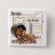 Affix it to a purse, backpack, or clothes. This pullback button is adorned with the words chocolate, almonds, and dark chocolate text in English, French, and German in a variety of typeface styles, colours, and sizes behind a close-up photograph of chocolate bits and almonds spilling from a black ramekin. Click customize to select a background colour other than white.