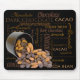 Make a happy work environment when you add this sweet tooth mouse pad adorned with the words chocolate, almonds and dark chocolate text in English, French and German in a variety of font styles, sizes and colours as background for a close up photograph of chocolate bits and almonds spilling from a black ramekin. Click the orange Customize it! button to select a background colour other than black when you click Edit then Background.  I like it with a white background too. Nice gift idea for a special someone in your life?