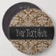Chocolate Brown Damask Pattern; Chalkboard look 6 Inch Round Button