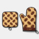 Chocolate brown doughnuts pattern oven mitt & pot holder set