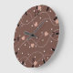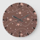 Chocolate Brown with Pink Hearts Pattern Large Clock