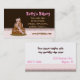 Fun whimsical business card done in tan, pink and dark brown. Cute graphics of a fancy cake decorates the left side of this sweet business card. Perfect for a bakery shop, party shop, or an independent custom baker. Customize the text fields to personalize for yourself or your shop.