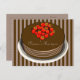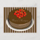 Recipe cards illustrated with a chocolate cake and strawberries on a striped background.