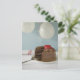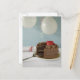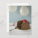 Chocolate cake with missing slice on table, postcard