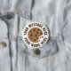 Chocolate chip cookie pin buttons with custom text. Personalized with your name or quote. Modern round design. Cute cookie logo with bite taken out and crumbs. Great for Birthday, baking event and more.