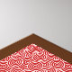 Chocolate fudge cupcake topped with a cherry, in a decorative, red and white cupcake wrapper, on a red and white, Japanese swirl patterned background poster