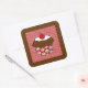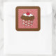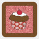 Chocolate Cupcake on Red and White Pattern Square Sticker