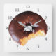 Chocolate Frosted Yellow Cake Donut with Bite Out Square Wall Clock