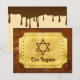Chocolate golden ticket Bar Mitzvah flat thank you card. This would also be a great choice for a chocolate or candy golden ticket Bat Mitzvah thank you card. The design features a melted chocolate background with a golden ticket overlay. This golden ticket Bar Mitzvah or golden ticket Bat Mitzvah flat thank you card is a great choice for a chocolate or candy themed Bar or Bat Mitzvah.