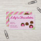 These delicious business cards feature some stunning stripes and adorable chocolate heart bonbons! These scrumptious business cards are perfect for a chocolatier or bakery and will be sure to leave a lasting impression!