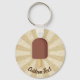 Chocolate ice cream stick icon on beige grunge background. Custom text on both sides.