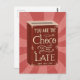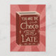 You Are The Choco To My Late, Love Chocolate Illustration Vintage postcard is a great way to tell someone that is your other half on Valentines Day. This illustrated hand-lettered art vintage chocolate tin design makes a lovely vintage greetings postcard that would make a loved one feel super special.