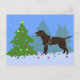 Chocolate Lab in Forest Decorating Christmas Tree Holiday Postcard