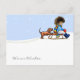Send warm wishes this winter with customizable postcards featuring this cute design. Child and dog sledding in the snow whimsical illustration. (c) 2010 Off-Leash Art.