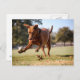 Chocolate Lab Pit Mix Dog Chasing Ball Postcard