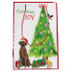 Chocolate Lab Santa Hat Puppy and Christmas Tree Medium Gift Bag