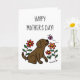 Chocolate Labrador and Green Mother's Day Card. Cute and cheery Labrador Cartoon created by Naomi Ochiai from Japan. An adorable Chocolate Lab Puppy cartoon in the garden with colourful flowers and a butterfly. Kawaii Labrador design for Chocolate Labrador Mom!