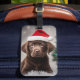Cute Chocolate Labrador puppy wearing a Santa hat.