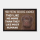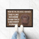 Custom dog doormat with a funny quote. "They like me more than they do most humans." It has a non-slip rubber that won't crack or buckle, resists fading, mould, and mildew and can be easily cleaned with a hose. Be creative - click on CUSTOMIZE to add/remove/change text, change the picture, resize the picture, change colours, background or anything else the customization tool will allow!