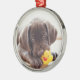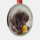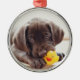 Chocolate Labrador Puppy With Toy Duck Metal Ornament