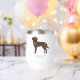 Destei's original cartoon illustration of a chocolate brown colour Labrador Retriever breed dog. The dog has a kind face expression that is framed by her large floppy ears. The dog design pictures the dog from the side while standing. The dog's head is turned the viewer of the image. There is also a personalizable text area for a name or other custom text.