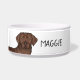 Destei's original cartoon illustration of a chocolate brown colour Labrador Retriever breed dog's head close-up. There is also a personalizable text area for a name or other custom text such as "Water" or "Food".