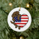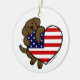 Chocolate Labrador & US Flag Heart 2 Cartoon Ceramic Ornament