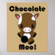 A kawaii brown cow kicking between the words “Chocolate Moo”! Great for fans of chocolate milk, baby cows, and sweet kawaii humour.