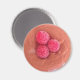 Quirky fridge magnet with delicious looking raspberry and chocolate mousse dessert.