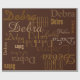 A nice typography pattern. Repeated name in different font styles and sizes on a brown background. A tone of dark brown that resembles chocolate.